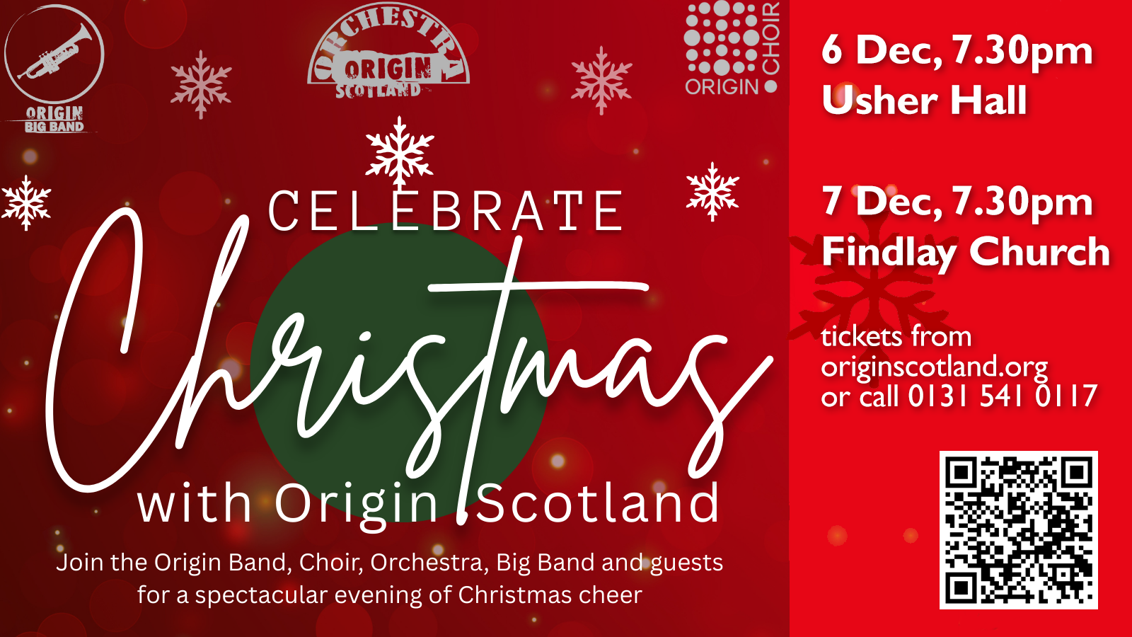 Celebrate the season with Origin Scotland, and a host of musicians and singers in a magical evening of Christmas music.